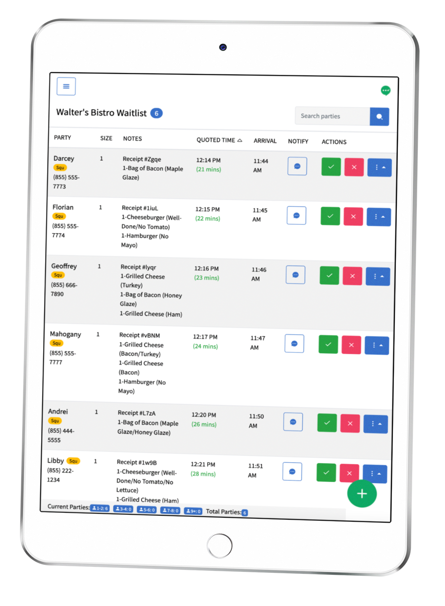 Our direct integration with Square automatically pulls in customer and order information, so you can notify them when their order is ready with a simple click of a button. View order information directly on your waitlist and use TablesReady as a KDS.